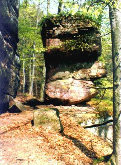 R90 zwischen 2 Zum Kanzelfelsen mit den Inschriften der Teilung der Haingeraide 108 Schr.